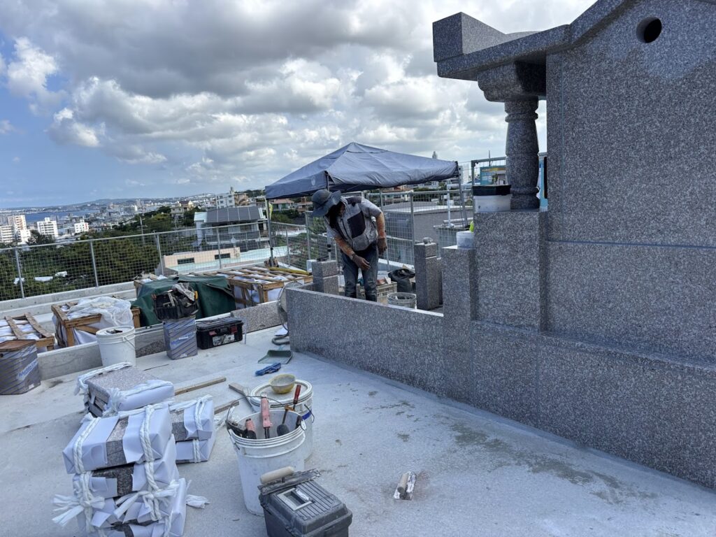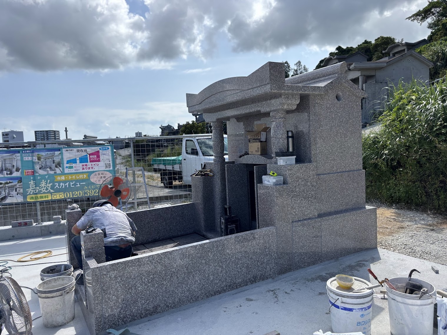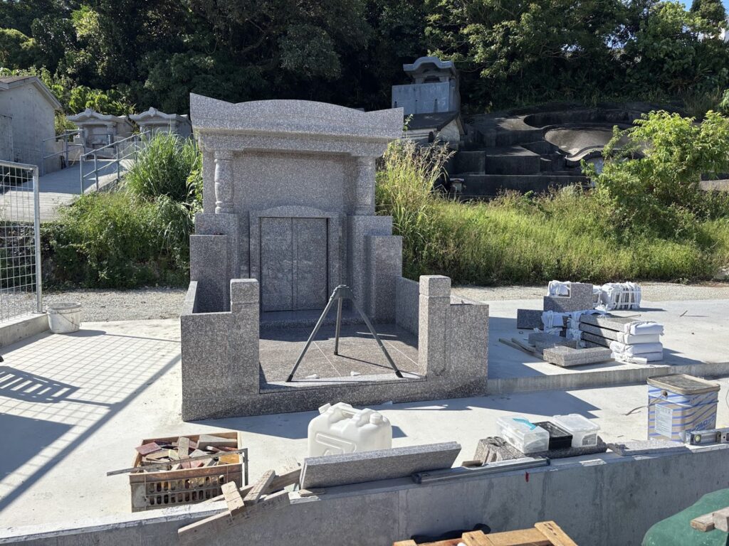 施主の親泊様のお墓の納骨組み立てがもうすぐ完成です。