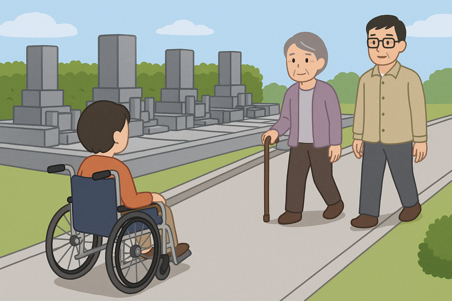 高齢化・身体の制約を抱える人が増える中で、墓地・霊園の多くは従来「段差」「狭い通路」「坂道」など参拝に負担を伴う構造になっています。
