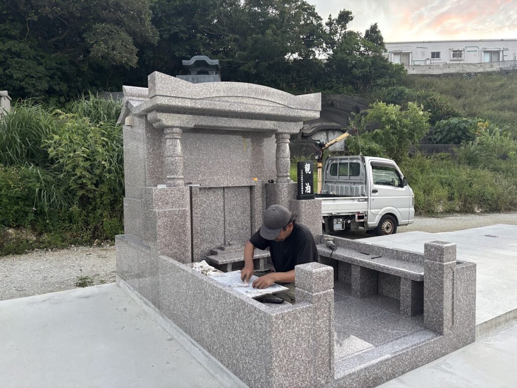施主の親泊様のお墓の墓標も無事に取り付けして完成しました。
