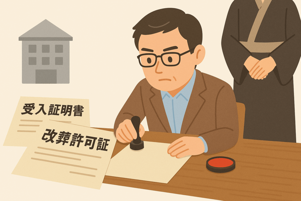 改葬には自治体の発行する「改葬許可証」が必須です。
