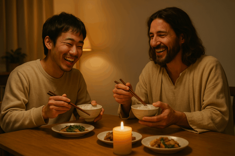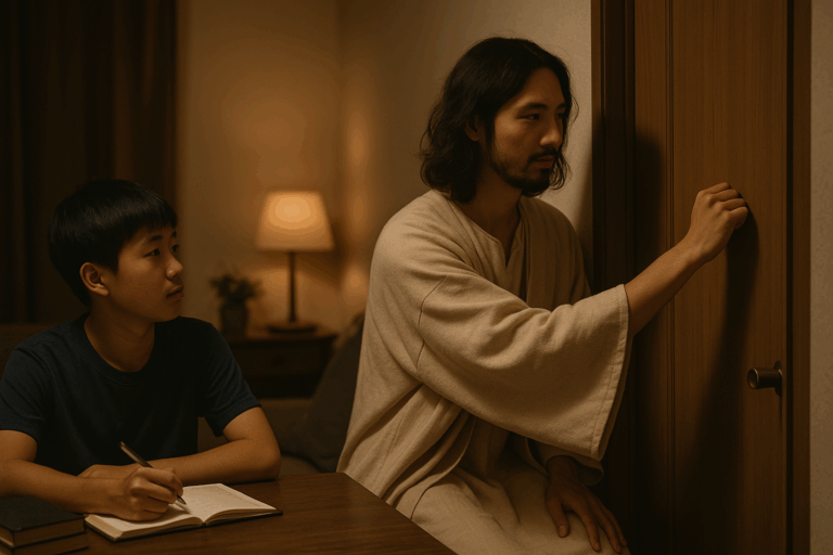 その瞬間、あなたの孤独な部屋に光が射し、主イエスが共に食卓を囲むように、人生にあたたかな希望が生まれるのです。
