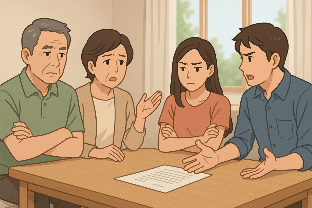 防止策: 早い段階で家族会議を開き、目的・理由を丁寧に共有し、同意書などを作成して“見える形”で合意を残すことが有効です。