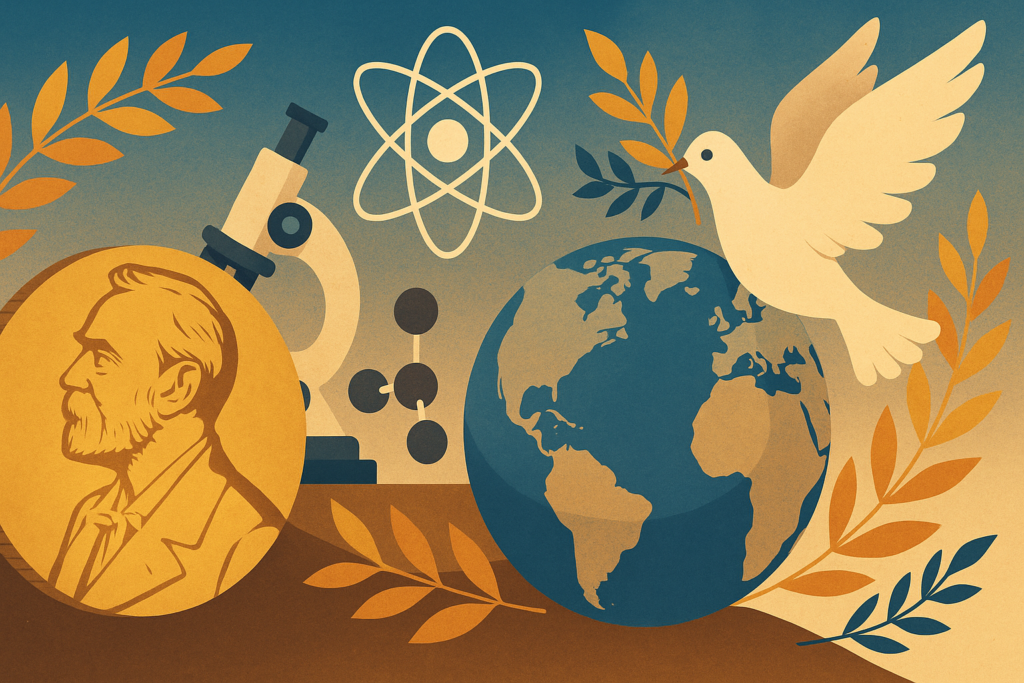 ダイナマイトの発明者アルフレッド・ノーベルが、自らの遺産を人類に役立つ研究・活動のために使うよう遺言したことから始まりました。
