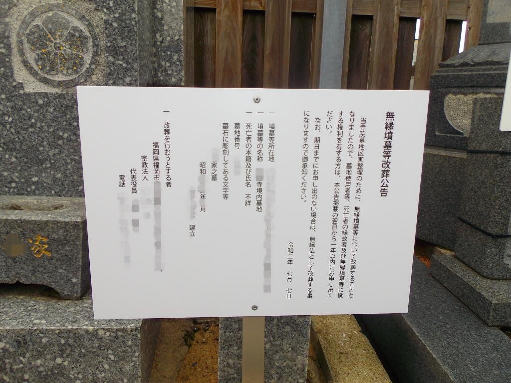 無縁と判断された場合、墓地埋葬法第9条に基づき、官報や墓地内掲示板等で公告を行います。