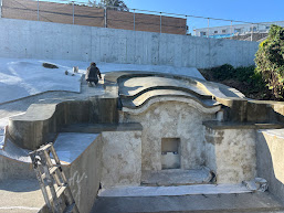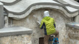 お墓の補修の左官工事をしている風景です。②