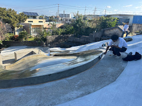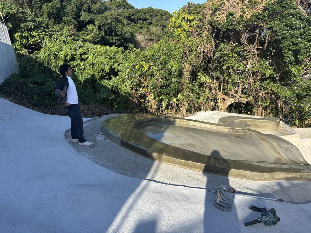 伊波家様のお墓の塗装工事の段取りの工事風景です。