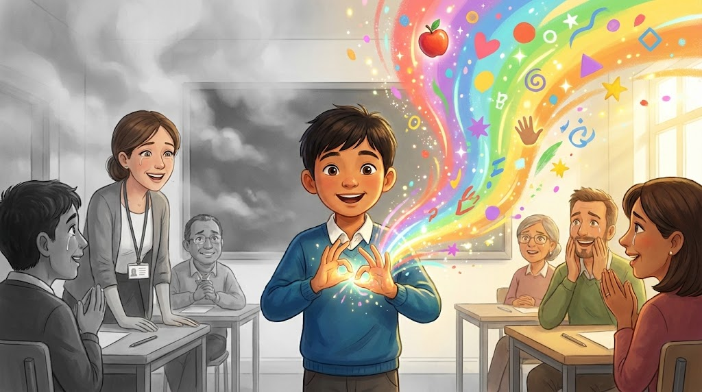 しかし、イギリスのろう学校で「手話」という言語に出会った瞬間、彼の世界は劇的に色づき始めます。