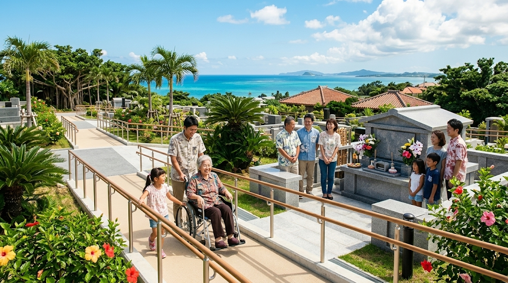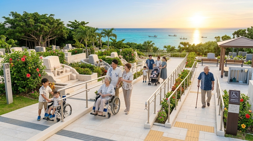 従来の霊園では階段や狭い通路が多く、介助する家族の負担が大きい場合もありました。