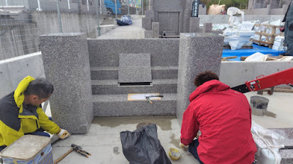 熟練した匠の職人達のお墓の建立の段取りがスタートしました。
