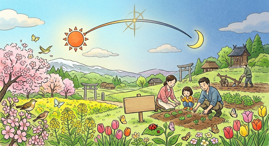 天文学的には太陽が「春分点」を通過する瞬間を指し、この日を境に北半球では次第に昼の時間が長くなっていきます。