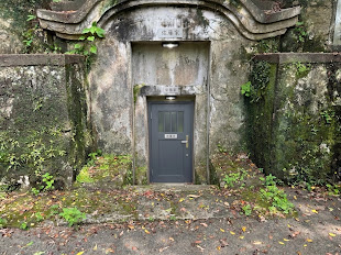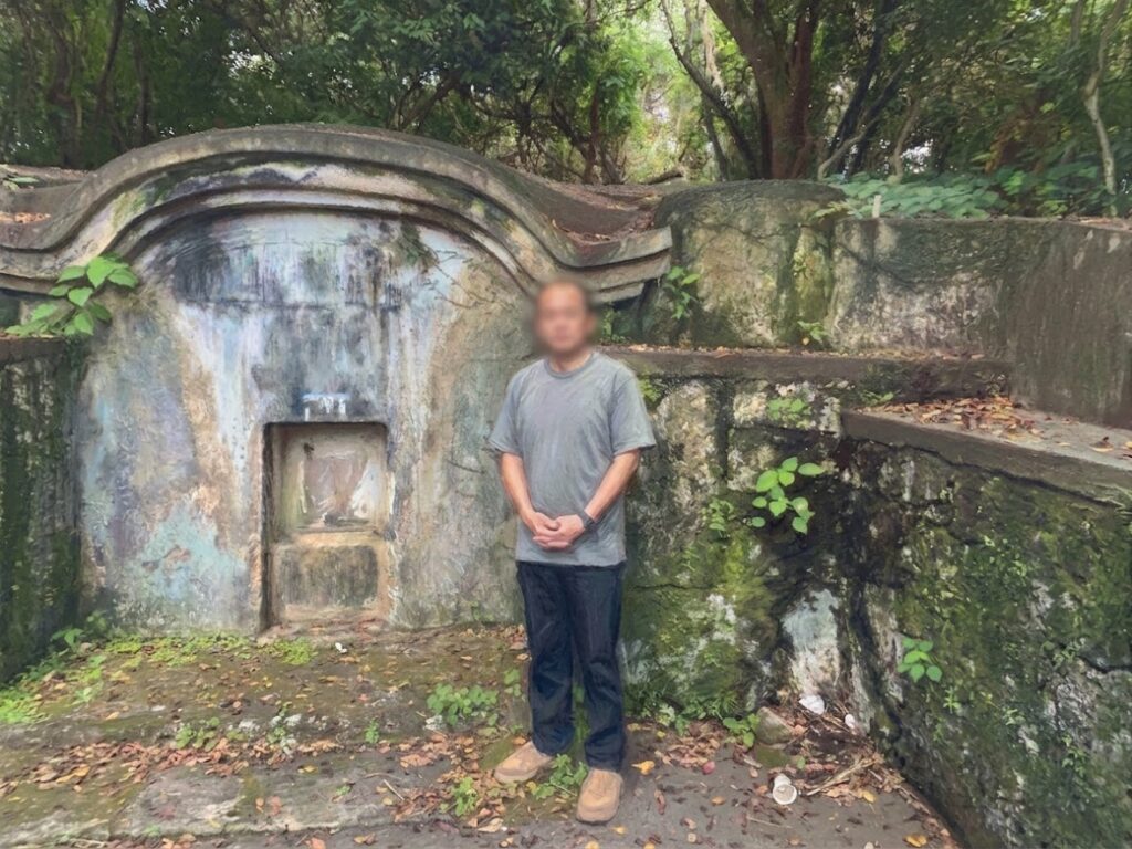 お客様のお墓の入口のドアの設置の調査・打ち合わせ風景です。