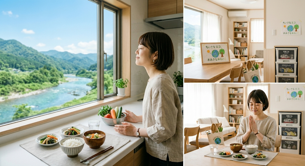 空気、水、食べ物など、当たり前にある恵みに感謝する心が、環境を大切にする意識を育てます。