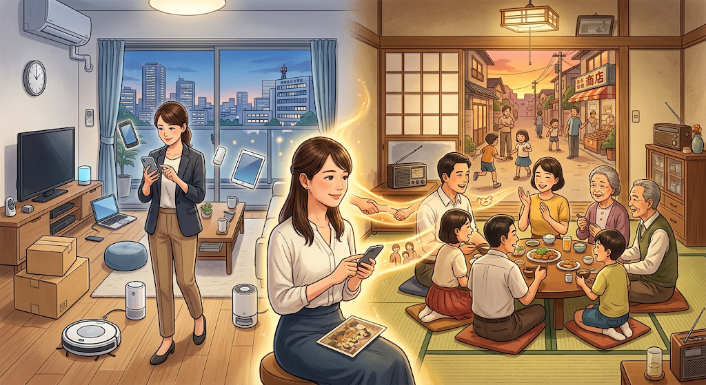 昭和の時代は、今ほど効率的ではありませんでした。手紙の返事を待つ時間、家族で一台のテレビを囲む時間。